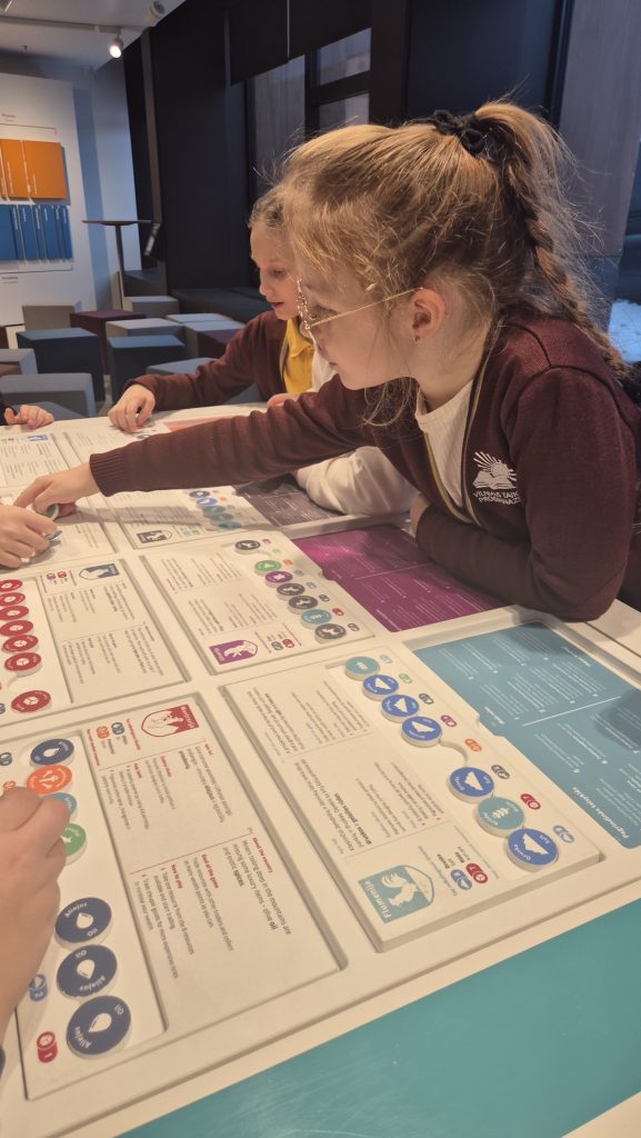 Įdomių ir interaktyvių veiklų metu mokiniai sprendė praktines užduotis, diskutavo apie kasdienes situacijas, susijusias su pinigų naudojimu, bei mokėsi priimti atsakingus finansinius sprendimus.