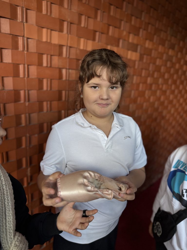 Mokiniai ne tik sužinojo apie tai, kas vyksta už scenos ribų, bet ir aplankė tapybos salę, kurioje kuriamos naujos dekoracijos spektakliams, praėjo minkštais balerinų koridoriais ir bent trumpam patys tapo aktoriais bei balerinomis!