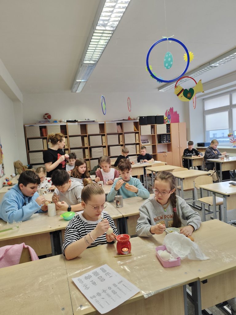 SEU dieną 4b ir 4c klasių mokiniai praleido turiningai.Užsiėmimą pravedė socialinė pedagogė, kurio metu mokėsi draugiškumo,susitelkimo, bendradarbiavimo.Vėliau margino margučius,taip atsiskleidė kūrybiškumas,kruopštumas.Kiekvienas savo margutį nusinešė namo,kur džiugins tėvelius.