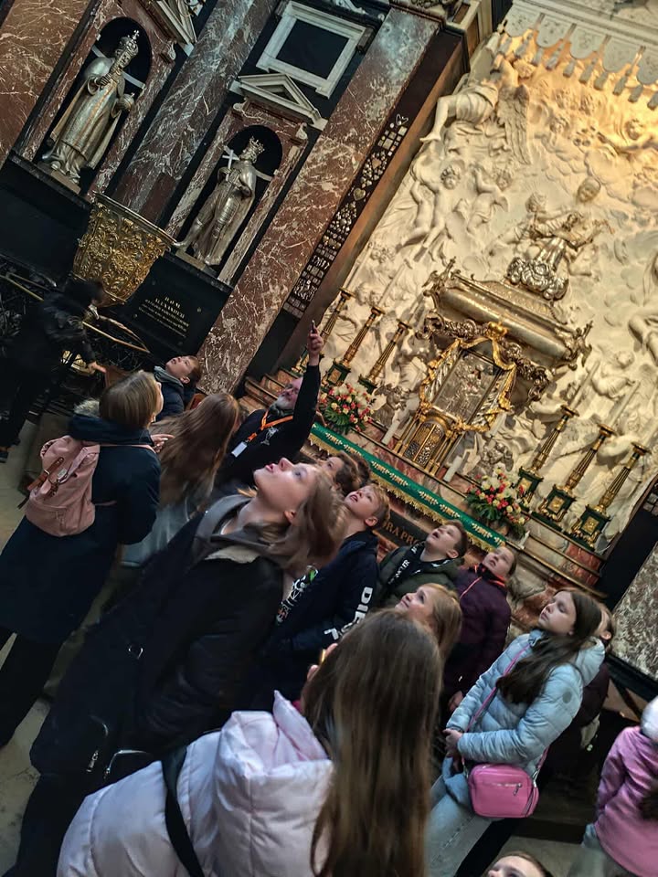 Vėliau mokiniai leidosi į kelionę „Nuo Vilniaus katedros požemių iki jos lobyno“: tyrinėjo kriptas, koridorius, laidojimo vietas, archeologinius radinius ir išskirtinius eksponatus. Požemių įspūdžius papildė apsilankymas Šv. Mykolo bažnyčioje, kur pristatomas istorinis katedros lobynas.