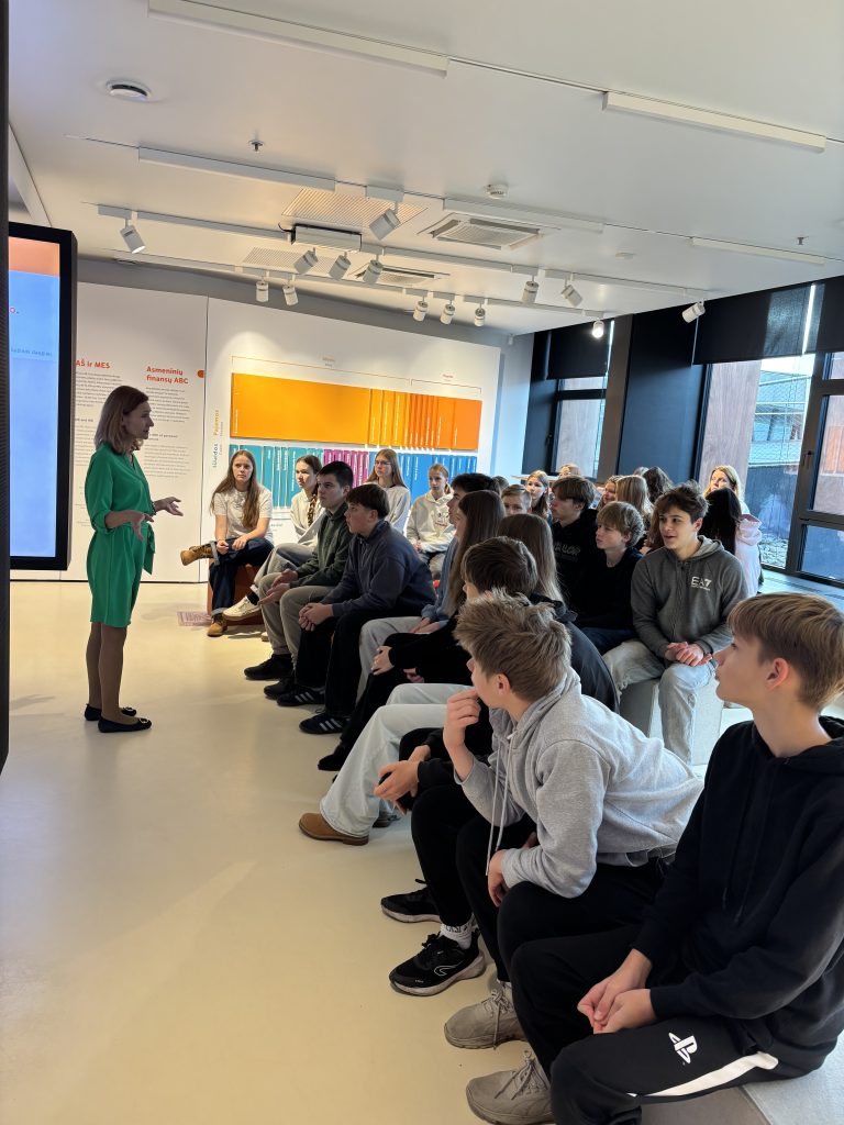 Antroji edukacija vyko „Swedbank“ finansų laboratorijoje, kur mokiniai dalyvavo įdomioje paskaitoje apie investavimą. Mokiniai sužinojo, kas yra investavimas, kodėl svarbu planuoti savo finansus ir kaip net mažos sumos gali ilgainiui užaugti. Lektorė paaiškino pagrindines investavimo taisykles, aptarė rizikas ir galimybes bei paskatino mokinius domėtis finansiniu raštingumu.