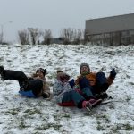 Trečiokai turėjo itin smagią fizinio ugdymo pamoką – ji vyko ne salėje, o lauke, prie jau baltų, apsnigtų kalniukų! Pamokoje naudojamas sporto inventorius – skirtingų rūšių rogutės ar čiuožimo lentos.