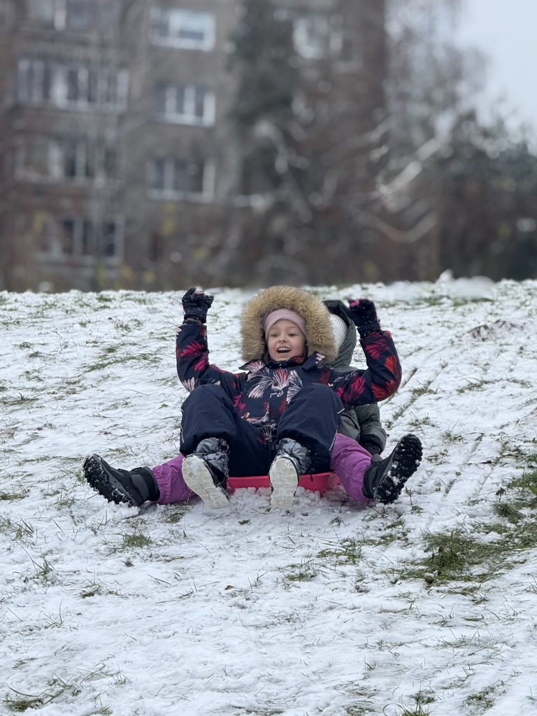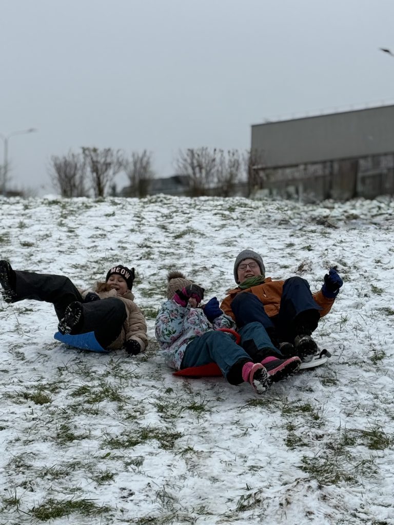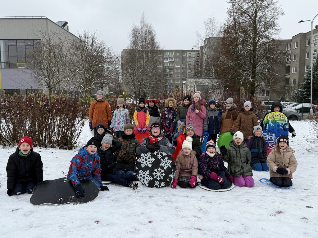 Trečiokai turėjo itin smagią fizinio ugdymo pamoką – ji vyko ne salėje, o lauke, prie jau baltų, apsnigtų kalniukų! Pamokoje naudojamas sporto inventorius – skirtingų rūšių rogutės ar čiuožimo lentos.