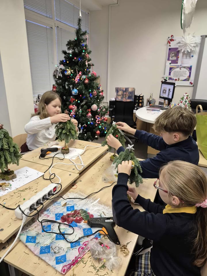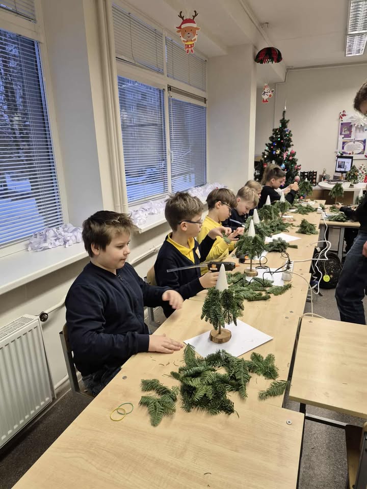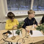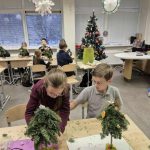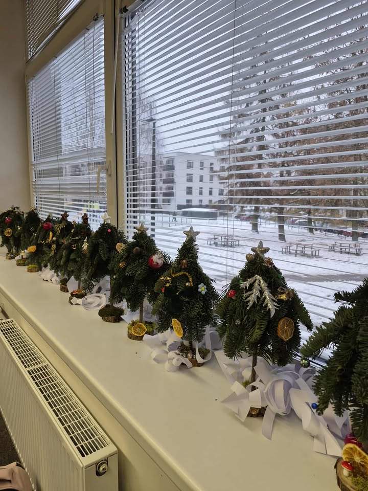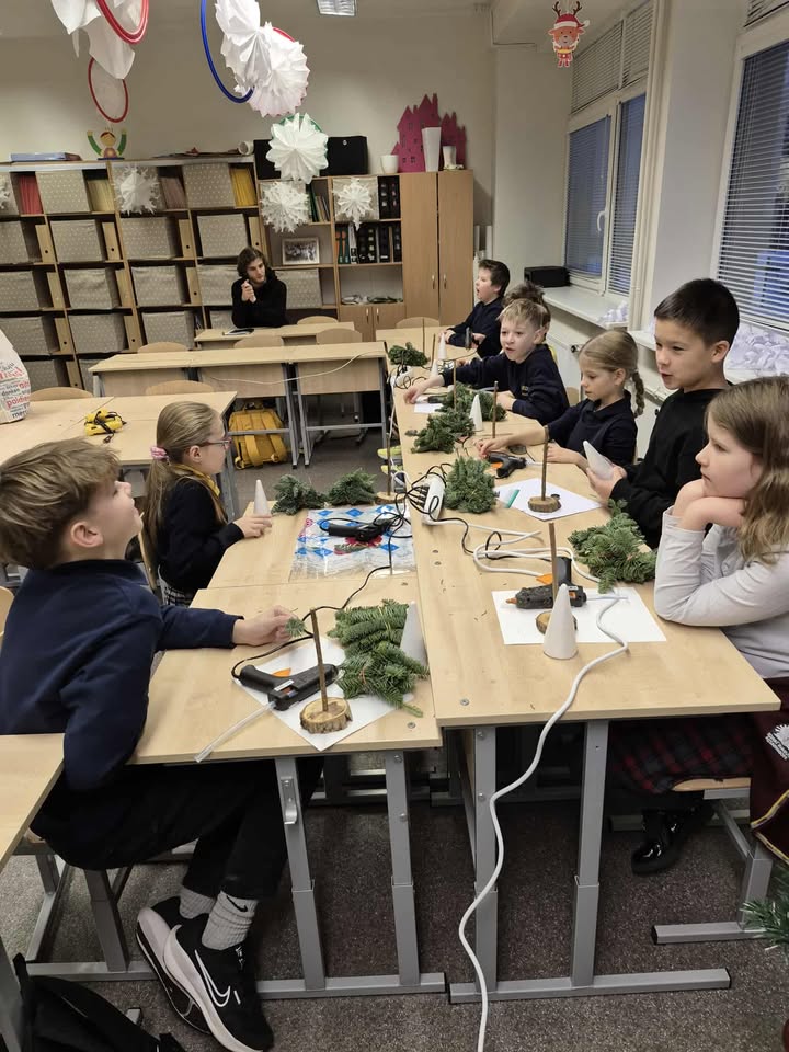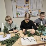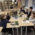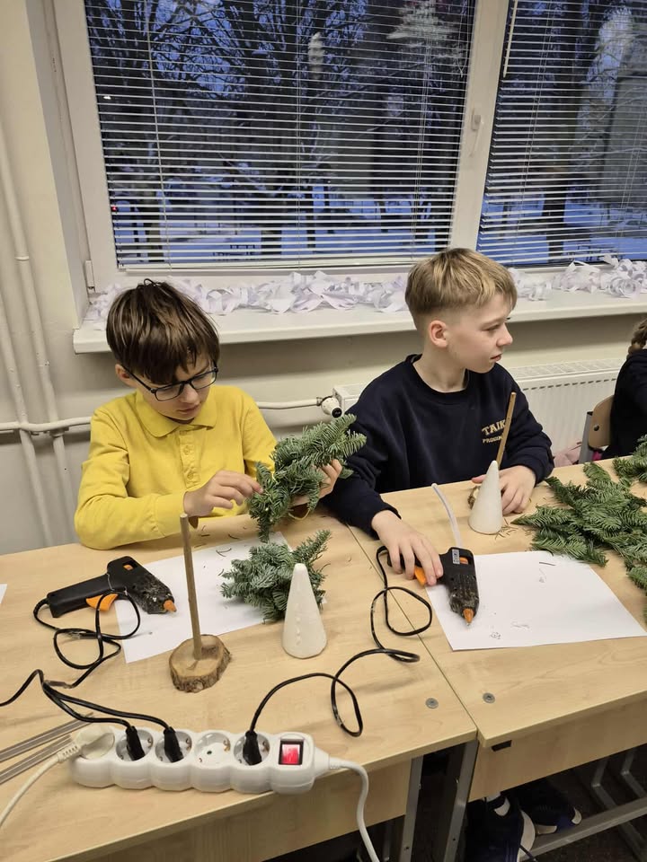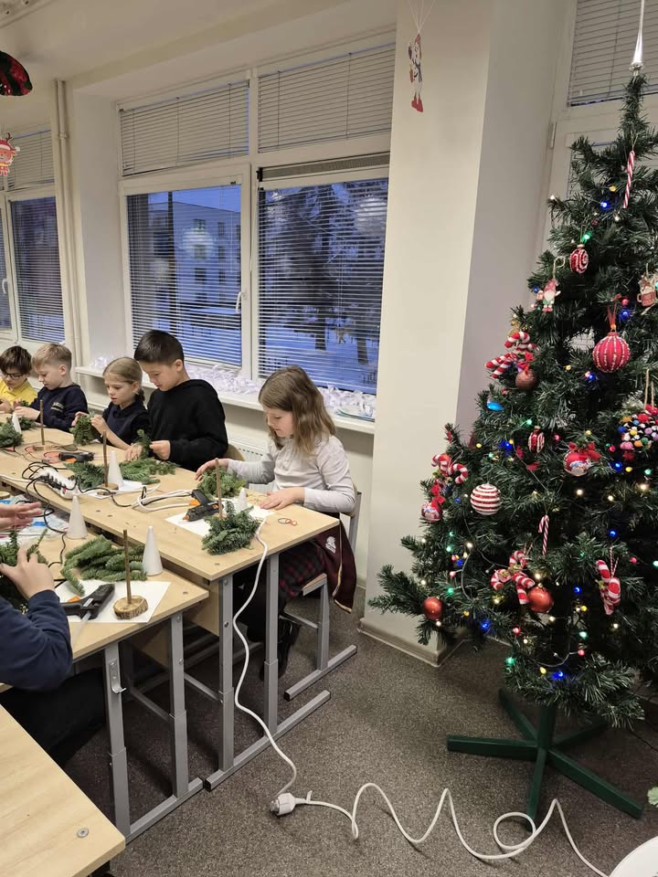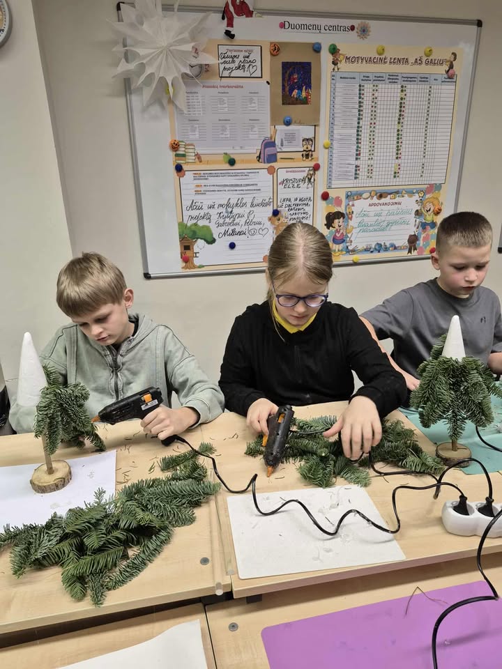 Artėjant šventiniam laikotarpiui 4a, 4b, 4c klasių mokiniai dalyvavo edukacinėse veiklose, iš kenio šakelių gamino eglutes.