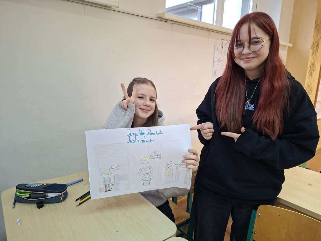 6 klasės mokiniai analizavo Jurgos Vilės ir iliustratorės Linos Itagaki komiksų knygą „Sibiro haiku“ ir patys kūrė komiksus.