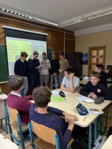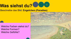 Pamokos pradžioje mokiniai vokiškai bandė atsakyti į klausimus: kas jiems yra menas? Ką jie jau žino apie šį kompozitorių ir dailininką? Vėliau dirbdami mažomis grupėmis, jie kūrė mini plakatus tema „M. K. Čiurlionis manyje“. Pristatydami savo darbus vokiečių kalba, mokiniai papasakojo, ką naujo sužinojo apie menininko gyvenimą ir kūrybą, bei pabandė paaiškinti, ką M. K. Čiurlionis reiškia jiems asmeniškai. Šios pamokos metu buvo ugdomas ne tik mokinių meninis suvokimas, bet ir gebėjimas vokiškai išreikšti mintis apie meną ir M.K. Čiurlionuo kūrybos reikšmę, jo kūrybinį palikimą, buvo skatinamas komandinis darbas ir gebėjimas argumentuotai reikšti mintis vokiečių kalba.
