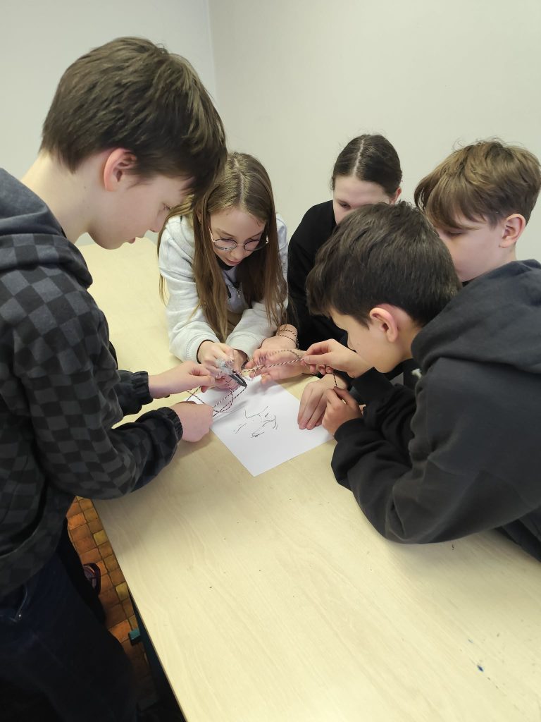 Reikėjo ne tik kūrybiškumo, bet ir susikalbėjimo, kantrybės bei strategijos – kaip valdyti virveles taip, kad rašiklis „paklustų“, o rezultatas būtų kuo tikslesnis.
