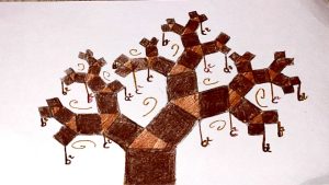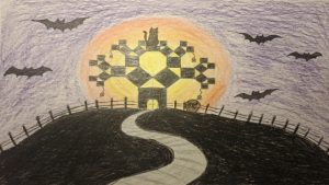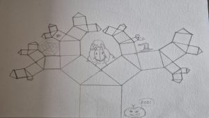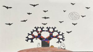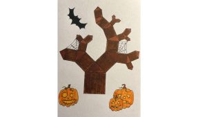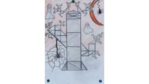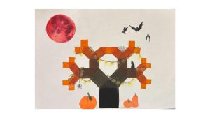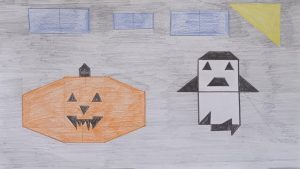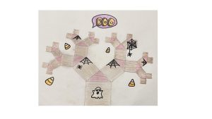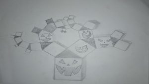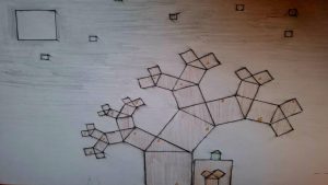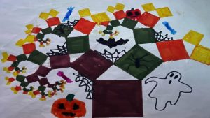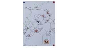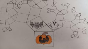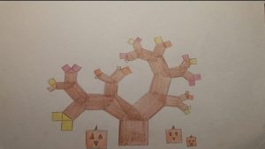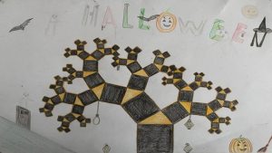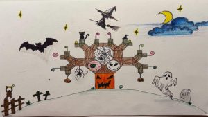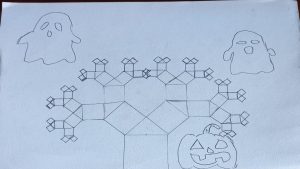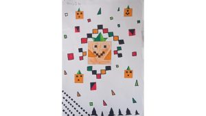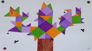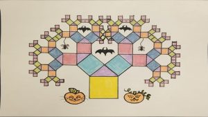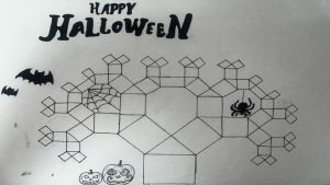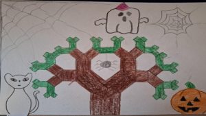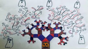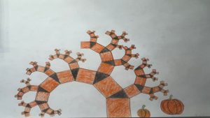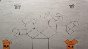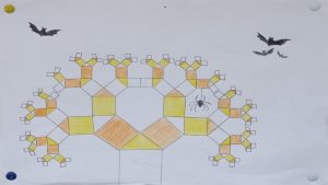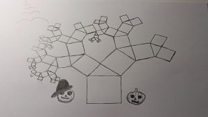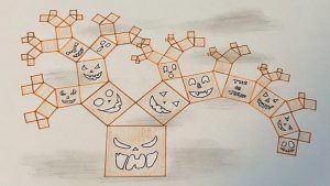 Dalinamės matematikos mokytojų Angelės Balčienės ir Marinos Goršenkovos 8 kl. mokinių darbais. Piešinių paroda – „Pitagoro medis – Helovinas“ 🎃