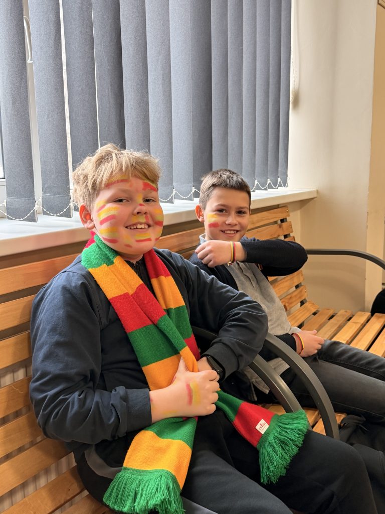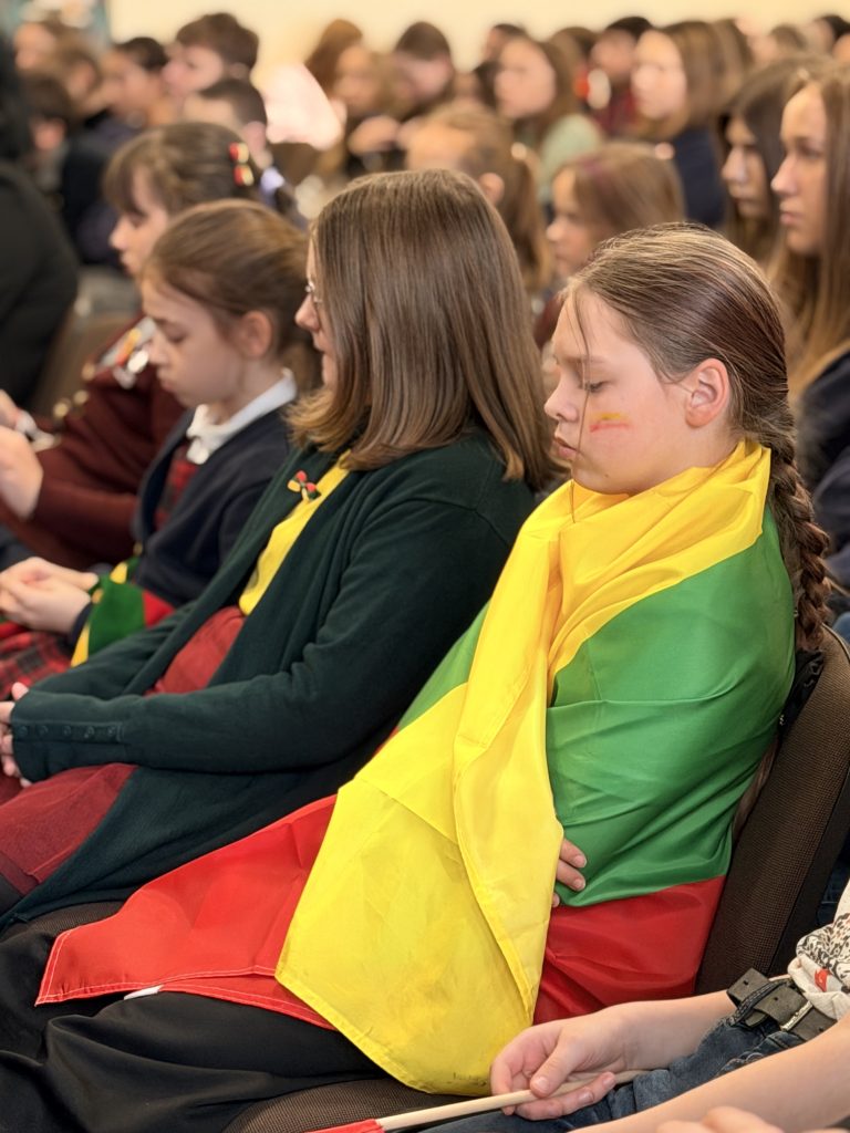 Visi kartu 8.00 val. įžiebėme žvakutes prisijungdami prie pilietinės iniciatyvos Pergalės šviesa. Taip pagerbėme laisvės kovotojus tylos minute, o tuomet rinkomės į mokyklos koridorius ir susikibę rankomis giedojome Lietuvos respublikos himną. Mokiniai ir mokytojai puošėsi įvairiais lietuviškais simboliais, o viešnia, dalyvavusi renginyje atvyko į progimnaziją vilkėdama Tautinį kostiumą! 🇱🇹