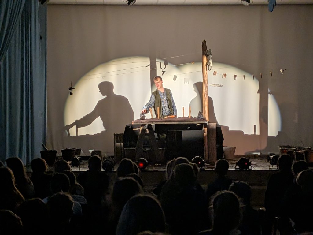 Daugeliui mokinių tai buvo pirmoji proga susipažinti su kitokiu – objektų teatru. Vaidindamas pagrindinis aktorius istoriją pasakojo su paprasčiausių kasdienių daiktų pagalba: kibirais, popieriaus skiautėmis, pagaliukais ir žemėmis. Aktoriaus rankose visi šie objektai įgavo magišką galią – jie virto įvairiais personažais (žmonėmis ir gyvūnais), mažais ir dideliais istorijos pasakojimui reikalingais daiktais (nuo lipnių varnalėšų iki traukinio vagonų).