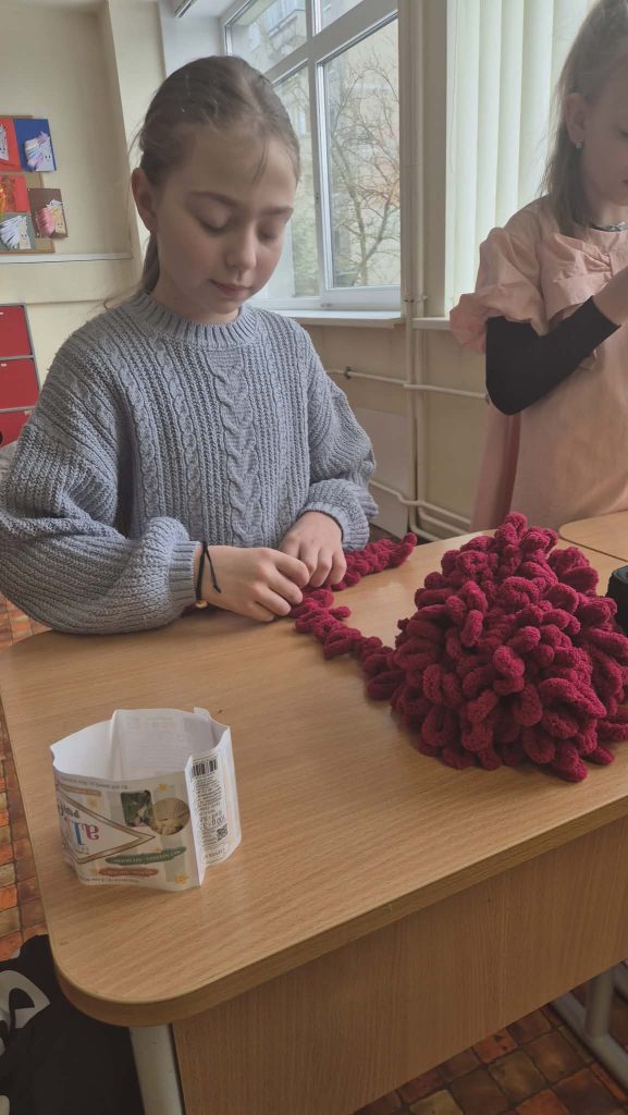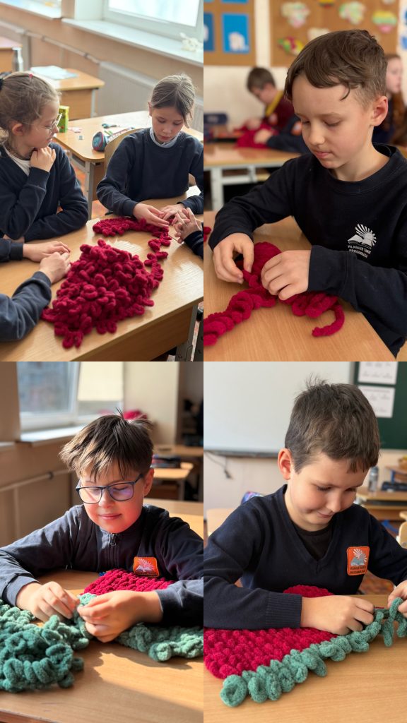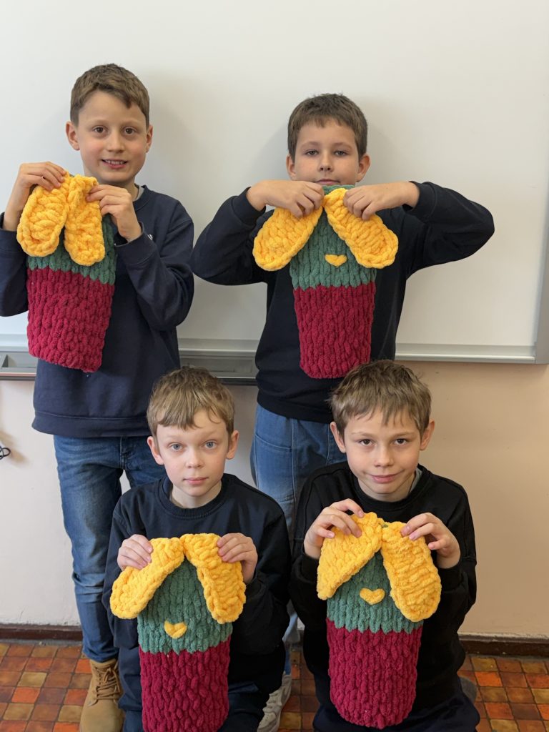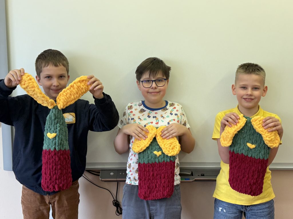 Kovo mėnesio technologijų pamokas pradinukai iš 2c, 3a bei 3d klasių paskyrė kilniam tikslui – mezgė migdukus Lietuvos vaikams.