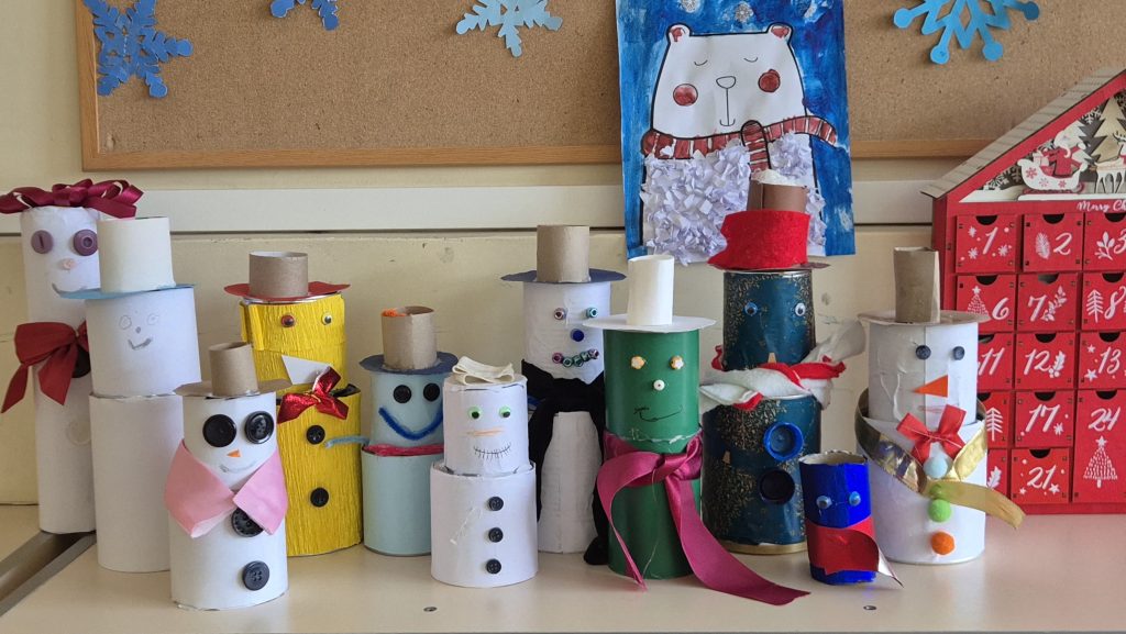 Šį ketvirtadienį mokiniai į 2c ir 3a klases skubėjo nešini tuščiomis skardinėmis, medžiagų atraižomis, blizgiomis pakuotėmis ir kitais nebereikalingais daiktais! Smalsu, kodėl? Mokiniai dalyvavo nuotolinėse Žaliasis taškas organizuojamose „Žaliojo raštingumo“ kūrybinėse dirbtuvėse. Kūrybiškai įvertinę atsineštus daiktus mokiniai sukūrė sniego senius! Tokia veikla ne tik smagi ir stiprinanti kūrybiškumą, bet ugdanti atsakomybę už mūsų planetos ateitį – supažindina vaikus su tvarumo, aplinkosaugos ir atsakingo vartojimo principais.